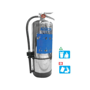 Extintor portátil de presión contenida, a base de Agua. -Cilindro fabricado en lámina de acero inoxidable acabado espejo.