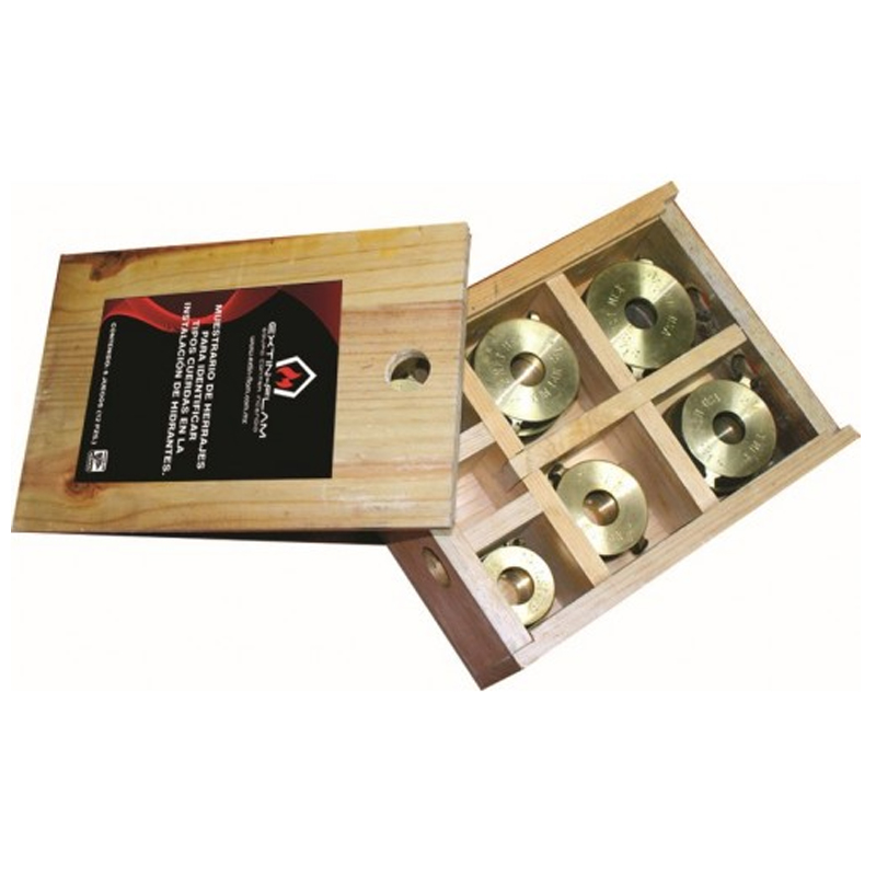 Juego de coples fabricados en bronce fundido para la identificación de cuerdas en la rama de hidrantes contra incendio.